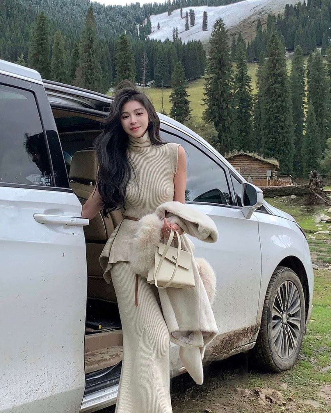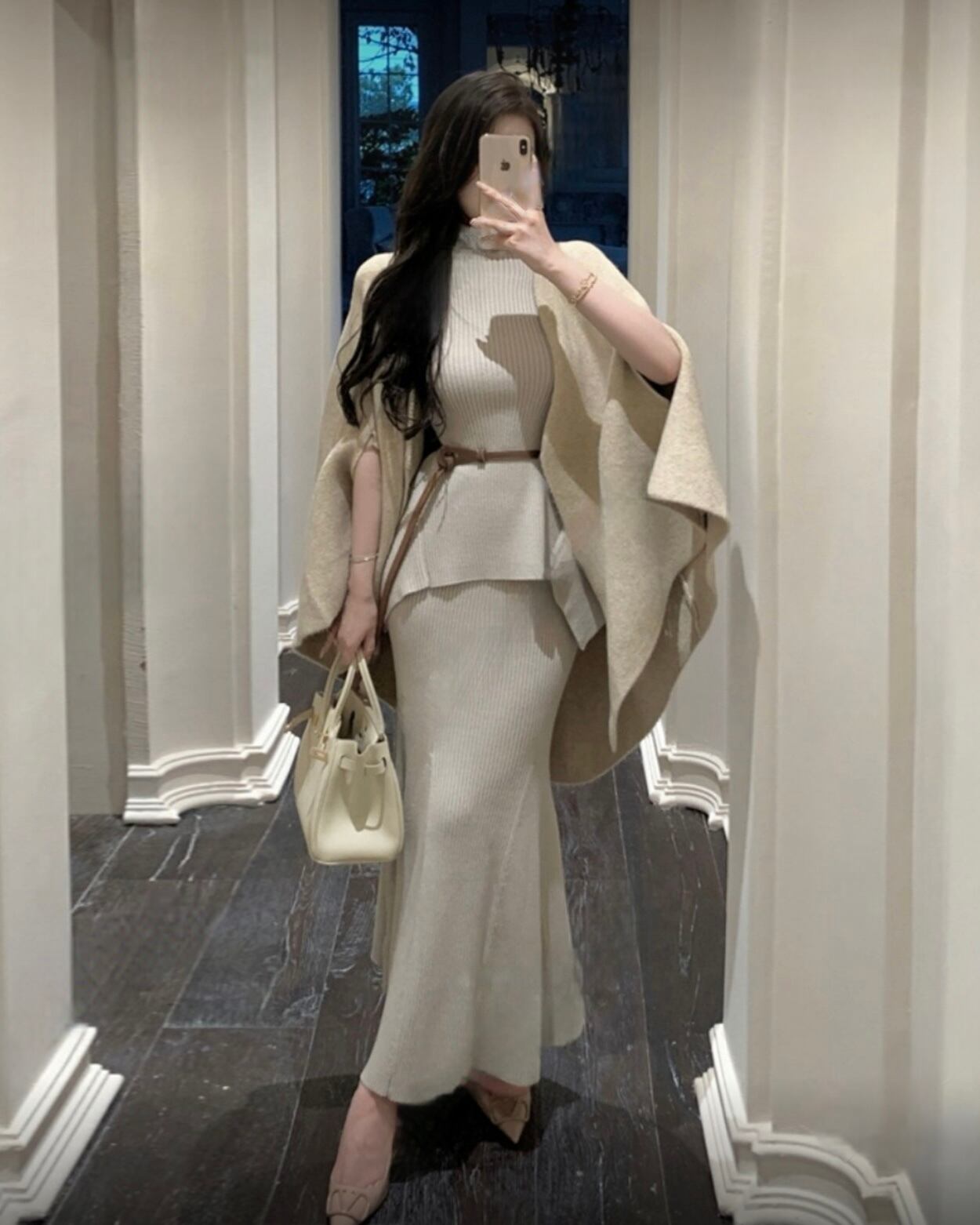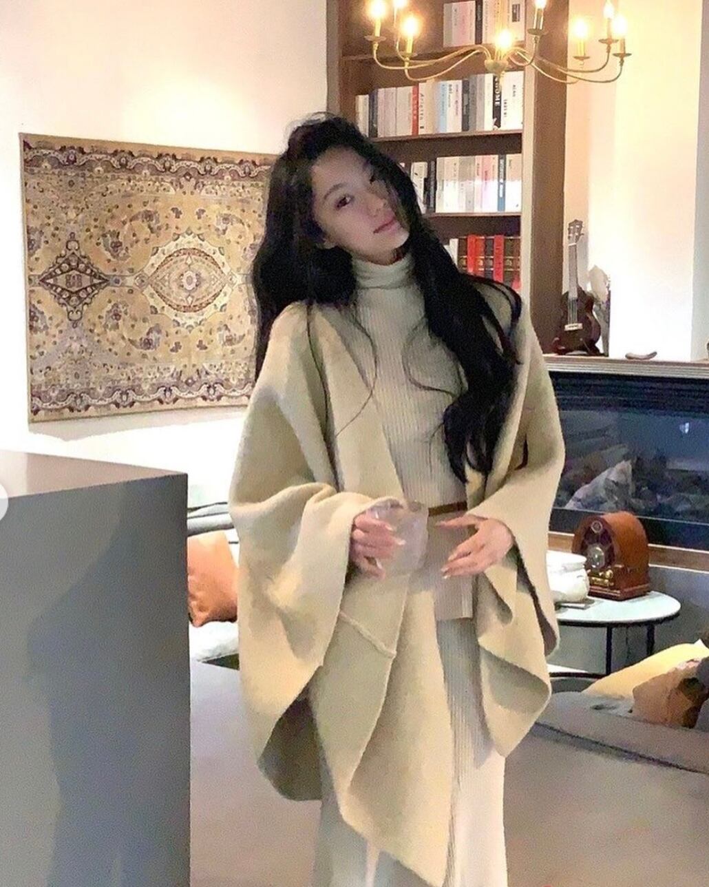トップス・スカート・ポンチョの3ピースセット。